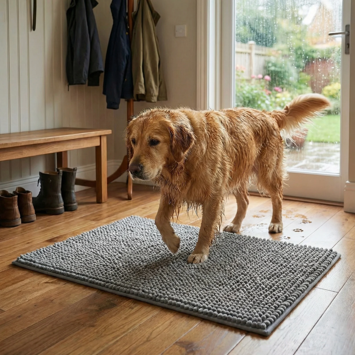 Le tapis anti-boue Oslo & Co est conçu pour la vie avec un chien : ses fibres plus épaisses et ultra-absorbantes retiennent l’humidité et la boue, sa surface est adaptée aux pattes, et sa base antidérapante lui permet de rester en place.